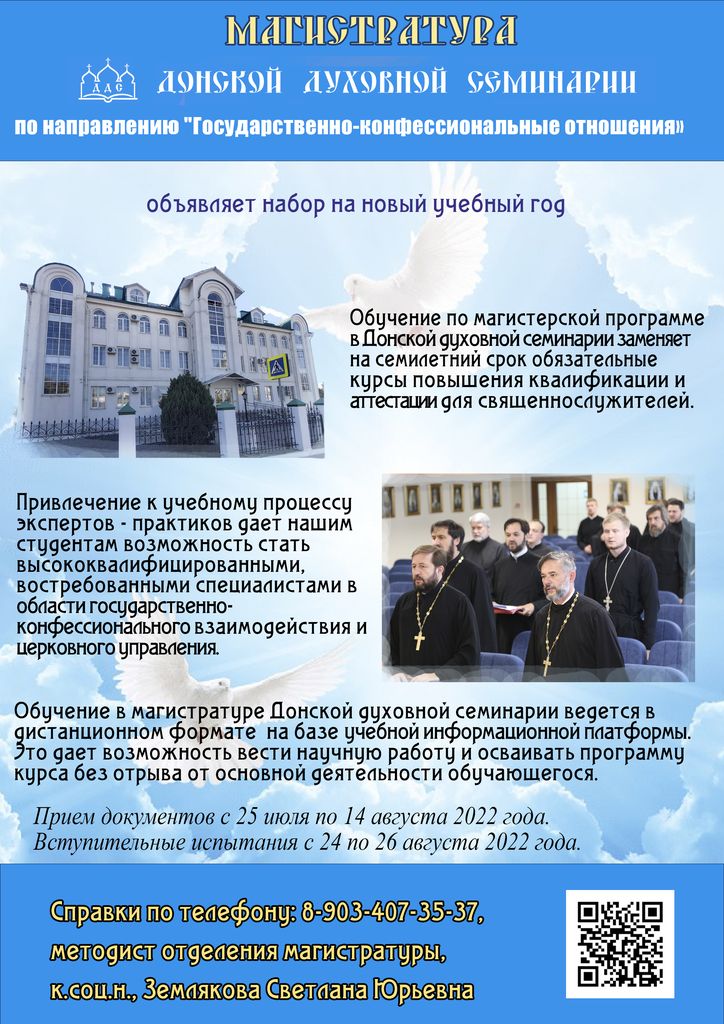 Магистратура Донской духовной семинарии по направлению «Государственно-конфессиональные отношения» объявляет набор на новый учебный год