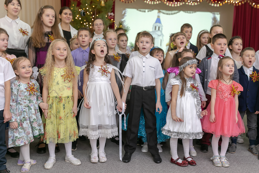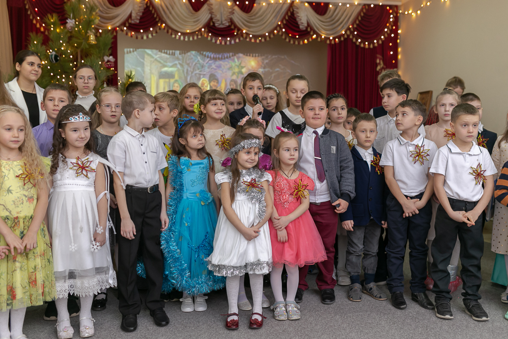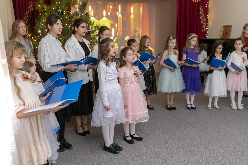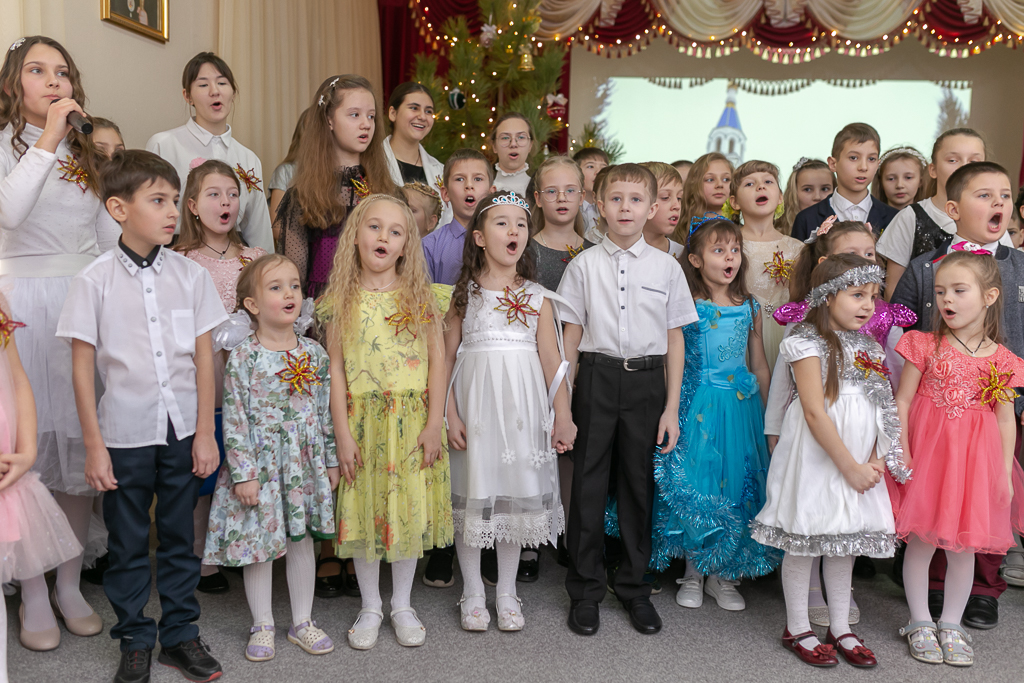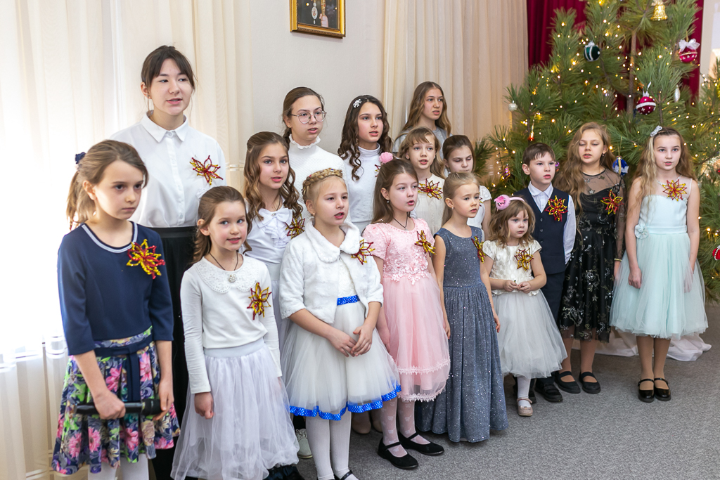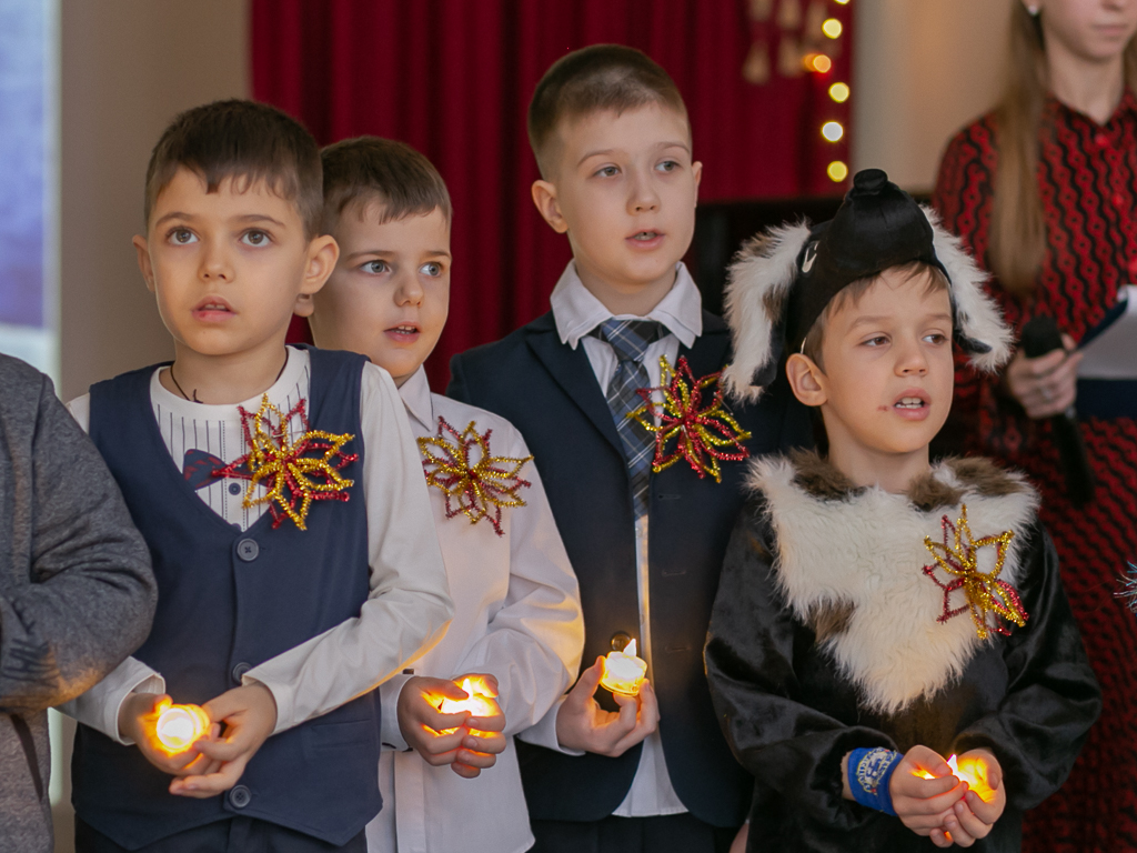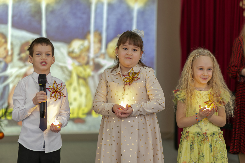 Рождество – какое ожидание праздника слышится в этом дивном слове, рождественская елка, вифлеемская звезда, морозный запах мандаринов, хлопушки, золотые шары, счастливый смех детства. Каждый раз это остановка в суетливом течении жизни и соприкосновение с благодатной радостью. Завершением праздника стало исполнение песни «Рождество снова в гости к нам пришло».