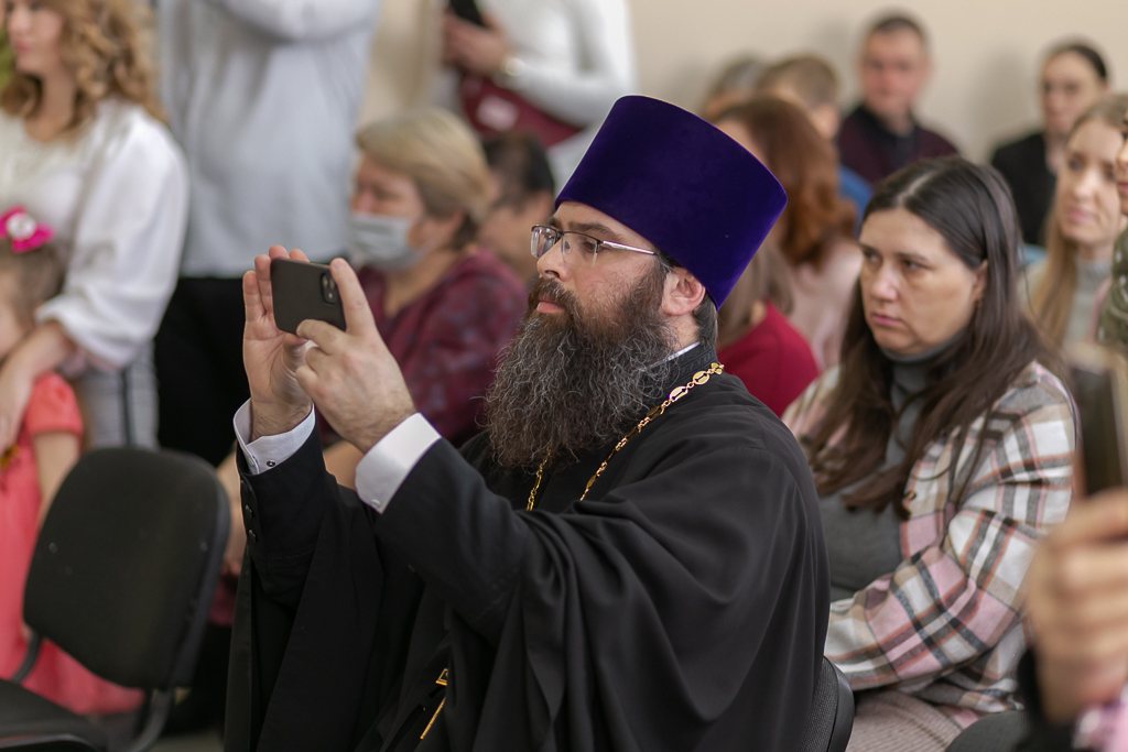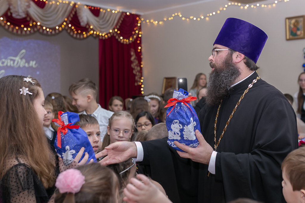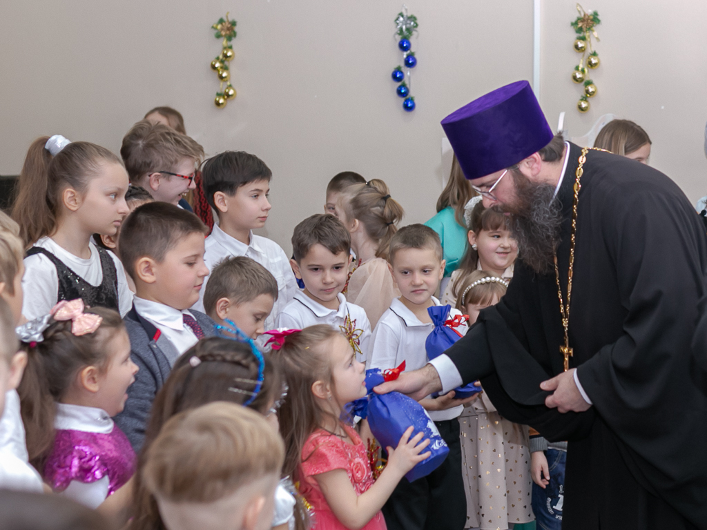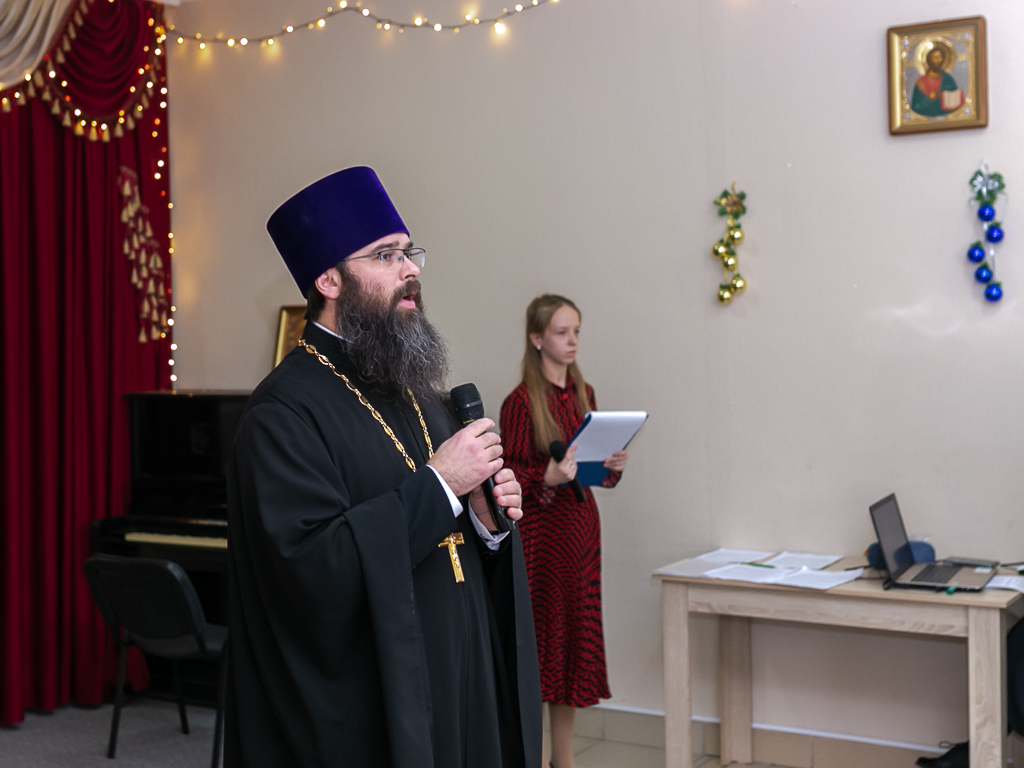 С поздравлением к детям, их родителям и преподавателям обратился настоятеля Покровского кафедрального собора иерей Александр Теличкин, который пожелал всем неоскудевающей духовной радости и помощи Божией в наступившем году.