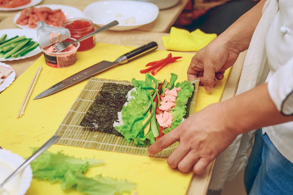 Ребята смогли задать интересующие вопросы и, конечно же, попробовать разнообразные разновидности роллов из натуральных ингредиентов в исполнении шеф-повара. А самые любознательные смогли даже принять участие в процессе изготовления.
