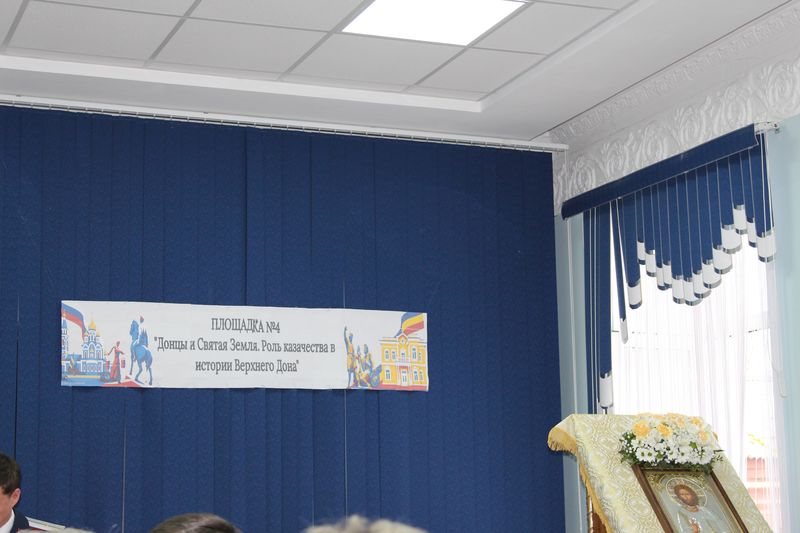 Площадка № 4 «Донцы и Святая Земля. Роль казачества в истории Верхнего Дона» была наиболее близка ключевой исторической тематике Чтений, посвящена истории паломничества донцов к святыням Палестины и Святой Горы Афона, а также современному вкладу казачества Верхнего Дона в духовно-нравственное воспитание подрастающего поколения на основе казачьих традиций. Площадка, собравшая более 60 участников, проводилась в помещении МБУ Шолоховского района «Шолоховский центр творчества». Организаторами работы площадки выступили благочинный Верхнедонского округа, настоятель Михайло-Архангельского храма станицы Вёшенской иерей Роман Митяшин, руководство Шолоховского района, районного отдела образования и епархиальный древлехранитель. Участниками секции стали представители делегаций г. Шахты и г. Миллерово на Чтениях, сотрудники отдела образования Шолоховского района, представители казачества Верхнего Дона, обучающаяся молодёжь района, представители патриотических молодёжных организаций, преподаватели и студенты Института сферы обслуживания и предпринимательства (филиала) ДГТУ в г. Шахты. Также в работе площадки приняли участие лица, непосредственно участвовавшие в организации и проведении Первых и Третьих Палестинских чтений Шахтинской епархии: член Общественной палаты г. Шахты Дмитрий Олегович Самарский и управляющая делами Миллеровской районной Администрации Ирина Владимировна Горбань. Сопредседателями площадки являлись директор департамента по делам казачества и кадетских учебных заведений Ростовской области Сергей Владимирович Красавин и директор МБУ «Информационно-методический кабинет» Светлана Сергеевна Фомичева. Модератором площадки выступил древлехранитель Шахтинской епархии, заместитель руководителя Ростовского отделения ИППО, старший преподаватель ИСОиП (филиала) ДГТУ в г. Шахты и ЮРГПУ (НПИ) им. М.И. Платова Илья Геннадиевич Шарков.