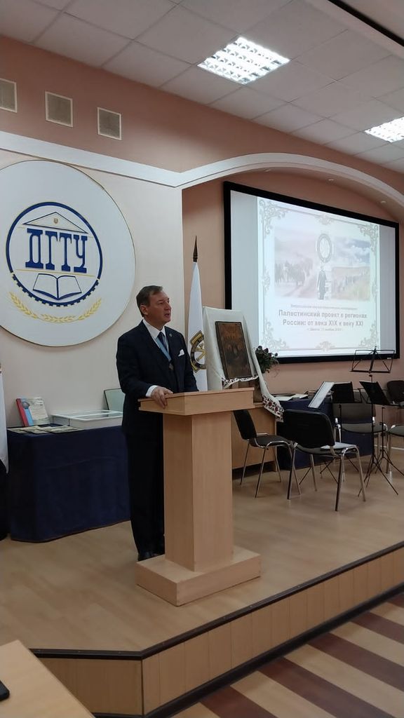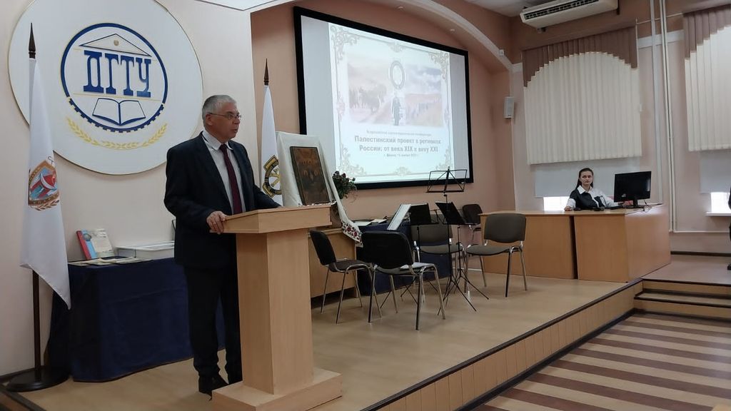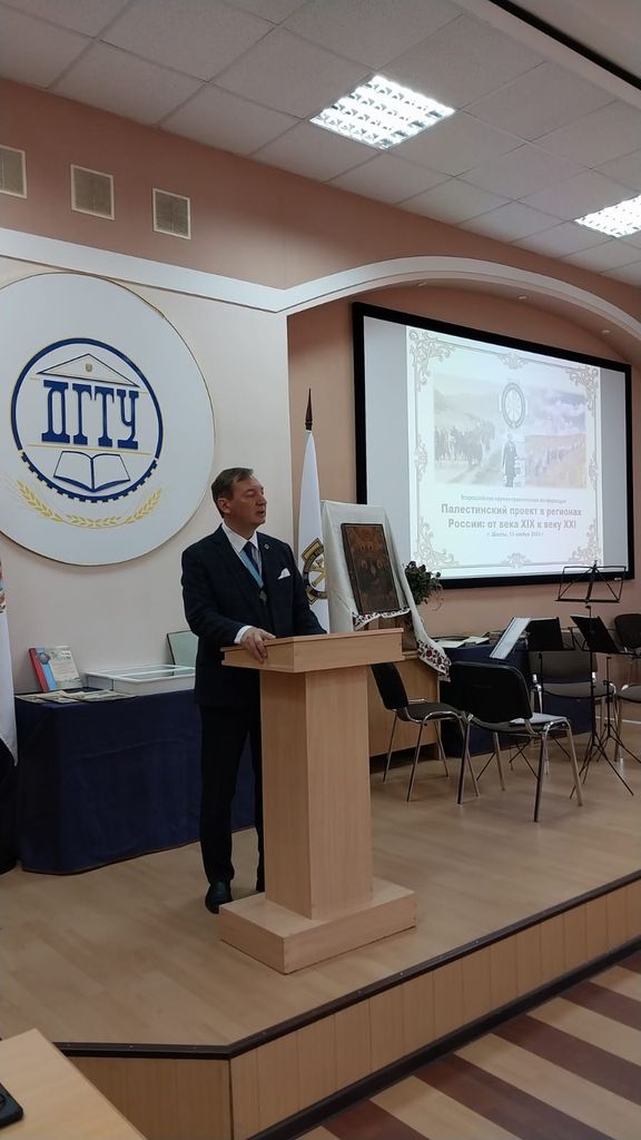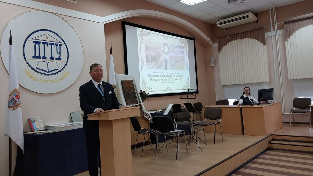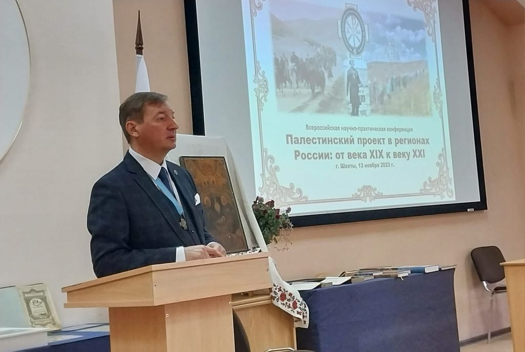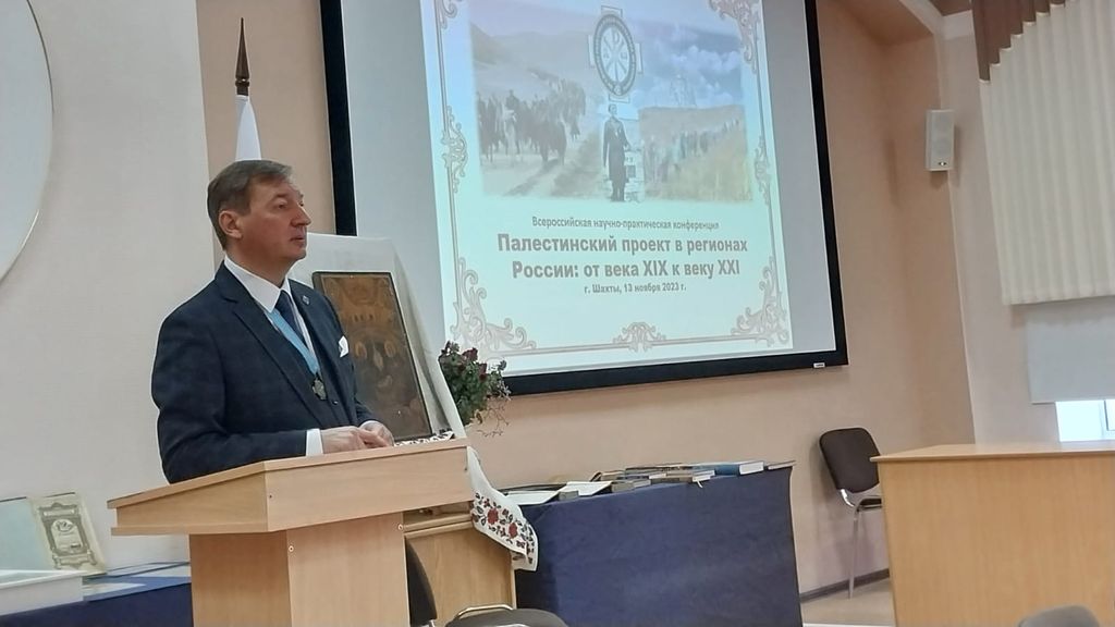 В рамках XXVIII Димитриевских образовательных чтений Донской митрополии «Православие и отечественная культура: потери и приобретения минувшего, образ будущего» (регионального этапа XXXII Международных Рождественских образовательных чтений) в зале заседаний Учёного совета Института сферы обслуживания и предпринимательства (филиала) ДГТУ в г. Шахты по благословлению епископа Шахтинского и Миллеровского Симона 13 ноября 2023 года состоялась Всероссийская научно-практическая конференция «Палестинский проект в регионах России: от века XIX к веку XXI». Организаторами форума выступили: Шахтинская епархия РПЦ (МП), Институт сферы обслуживания и предпринимательства (филиал) ДГТУ в г. Шахты, Ростовское отделение и Венгерское представительство Международной общественной организации «Императорское Православное Палестинское Общество» (ИППО) и Шахтинский музыкальный колледж.