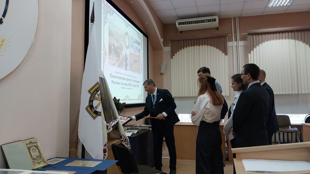 В рамках конференции состоялась презентация выставок: «Святыни Палестины и артефакты, связанные с историей Императорского Православного Палестинского Общества» и «Редкие издания, иллюстрирующие Палестинский проект в России из фондов библиотеки института» (И. Г. Шарков и заведующая библиотекой института О. И. Трубникова).