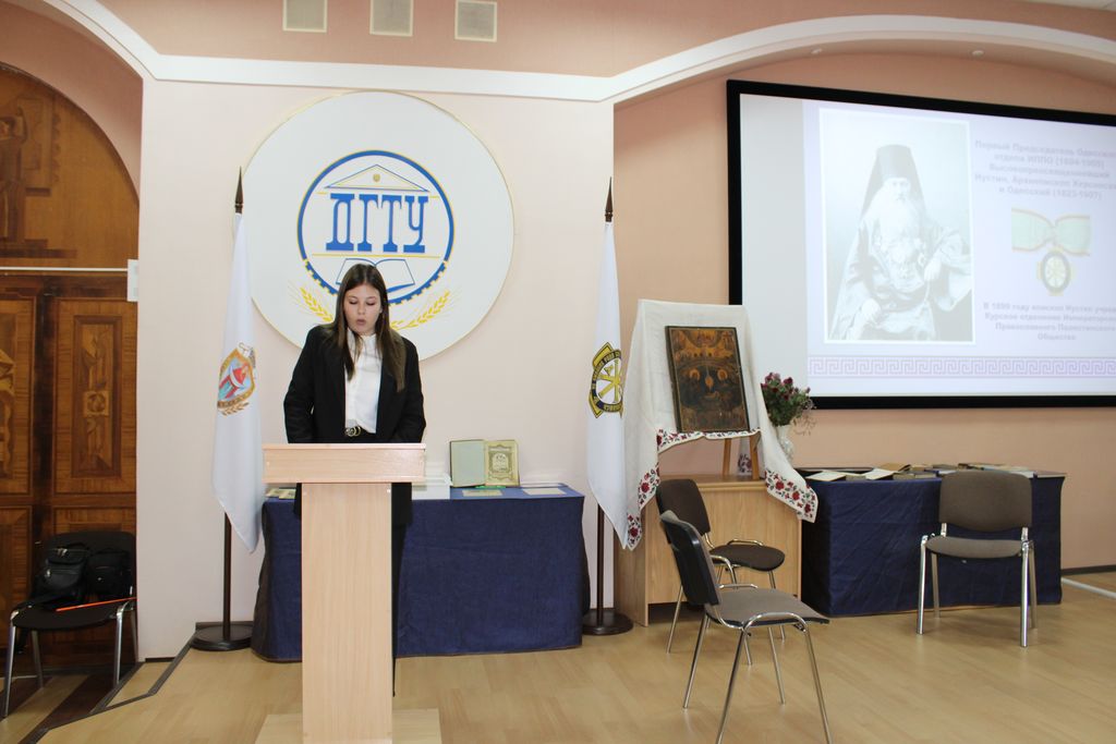 С докладом «Значимые личности в истории Донского и Екатеринославского отделов Императорского Православного Палестинского Общества в конце XIX – начале XX веков: миссионерская и просветительская деятельность в регионе», выступили старшие преподаватели кафедры «Православная культура и теология» ИСОиП (филиала) ДГТУ в г. Шахты Илья Геннадиевич Шарков и Людмила Борисовна Томилина. Паломническую тему в современной России и Ростовской области на личных примерах представила Обозреватель газеты «Шахтинские известия» Наталья Петровна Ершова, предложившая выстуление «От моря Азовского к морю Балтийскому». Под руководством заведующего кафедрой «Православная культура и теология», доцента, кандидата философских наук иерея Владислава Евгеньевича Касьянова и старшего преподавателя, секретаря и действительного члена ИППО Ильи Геннадиевича Шаркова были подготовлены студенческие выступления (ИСОиП (филиал) ДГТУ в г. Шахты): «Палестинский проект в Астраханской губернии в конце XIX – начале XX веков», студентка Анастасия Бондар; «Палестинский проект в Ставропольской губернии в конце XIX – начале XX веков», студент Анатолий Колодяжный; «Ключевые лица и активисты Ставропольского отдела Императорского Православного Палестинского Общества», студентка Софья Беляева; «Деятельность Императорского Православного Палестинского Общества в Одессе в конце XIX – начале XX веков», студент Марсель Сергеенко; «Ключевые лица и активисты Одесского отдела Императорского Православного Палестинского Общества», студентка Альбина Усок.