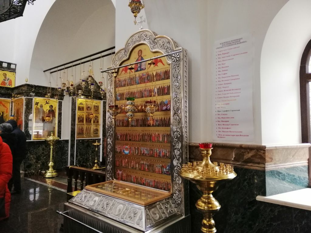 Чудотворный образ «Всецарица» – жемчужина монастыря был написан для храма в Ватопедском монастыре (Греция) как точный список старинного оригинала иконописцем Поляковым В.А. в июнь 2005 г. Эта святыня была освящена в Ватопедском монастыре его наместником архимандритом Ефремом и приложена к 180 древним святыням этого монастыря, в т.ч. к Поясу Пресвятой Богородицы. В 2006 г. икона помещена в построенный для нее мраморный киот с сенью и колоннами из меди с позолотой, украшенными эмалью. С этого же времени икона украшена дарами благодарных богомольцев, т.к. наблюдались неоднократные случаи исцелений от различных заболеваний по молитвам перед иконой Б.М. «Всецарица», подтвержденные записями в Книге отзывов. Перед иконой Божьей Матери «Всецарица» хочется стоять бесконечно, она словно притягивает к себе, в храме тихо, немноголюдно и время словно останавливается. Паломнической группе довелось приложиться к этой святыне, заказать требы и после этого конечного пункта поездки отправиться в обратный путь.