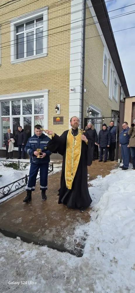 Отец Роман благословил сотрудников фонда на добрые дела и окропил имущество фонда, а также сказал доброе напутственное слово.