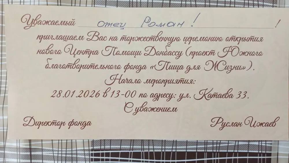 В конце января, в Ростове-на-Дону, протоиерей Роман Амплеев, руководитель сектора по взаимодействию с МЧС России и департаментом по предупреждению и ликвидации чрезвычайных ситуаций Ростовской области в Шахтинской епархии, принял участие в торжественной церемонии посвященному старту проекта «Центр помощи Донбассу», от благотворительного фонда «Пища для жизни».
