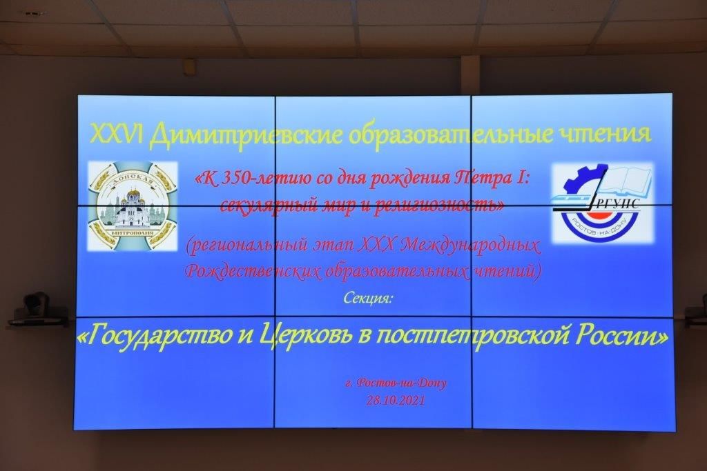 В Ростовском государственном университете путей сообщения в ходе работы XXVI Димитриевских образовательных чтений Донской митрополии «К 350-летию со дня рождения Петра I: секулярный мир и религиозность» в рамках секции «Государство и Церковь в постпетровской России» состоялось заседание одноименного круглого стола.