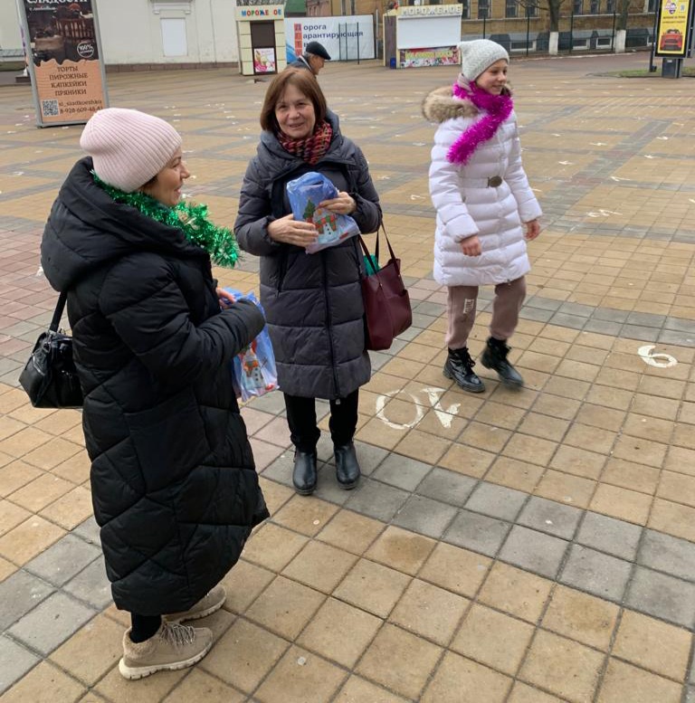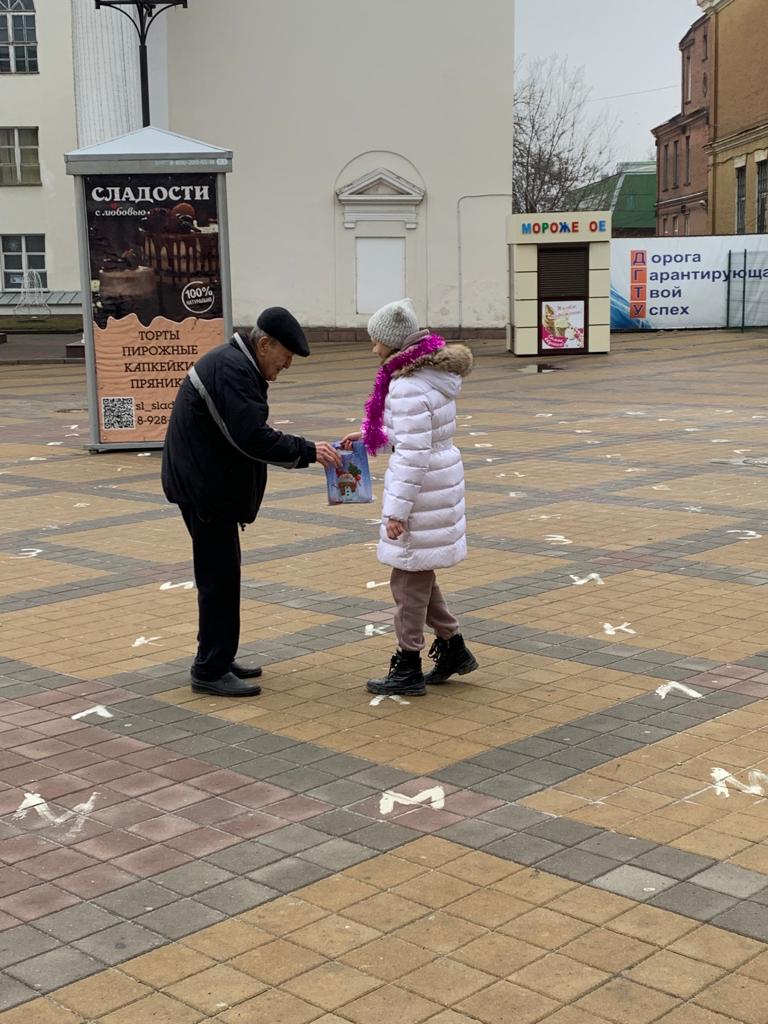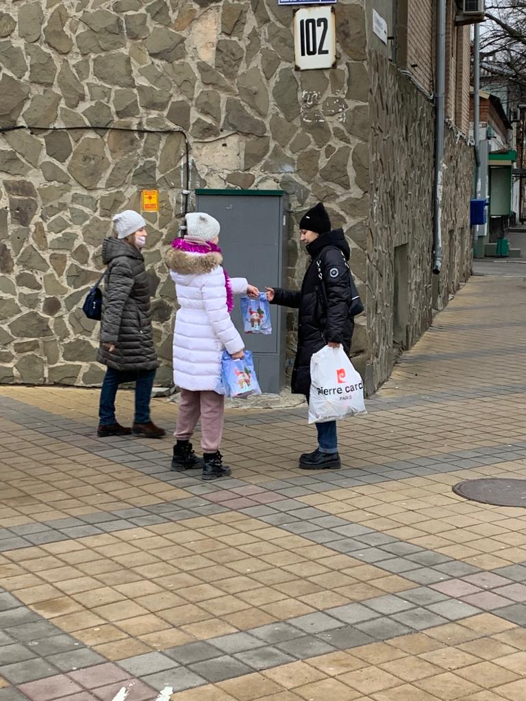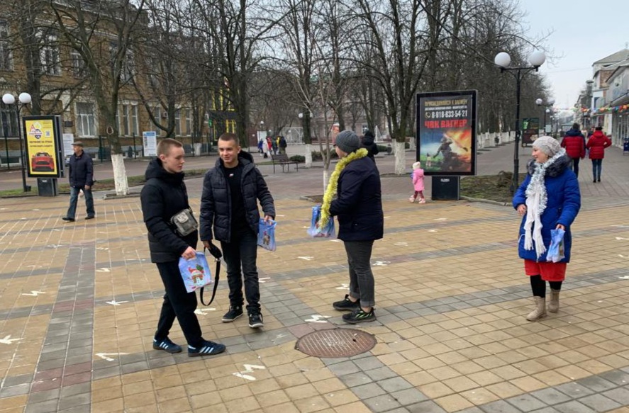 Молодые люди раздавали прохожим пакеты с мандаринами, шоколадкой и листовками, в которых объясняется духовный смысл праздника Рождества Христова. Это стало приятной неожиданностью для горожан всех возрастов, они благодарили за приятный сюрприз и пожелания, а кто-то в ответ желал здоровья и счастья.