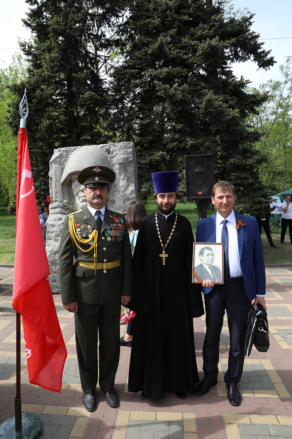 Вместе с ветеранами и сотнями горожан в событиях принял участие благочинный приходов Александровск-Грушевского округа протоиерей Сергий Яценко. По всем погибшим в годы войны была совершена панихида. Почтив молитвой и минутой молчания тех, кто ради нашего мирного неба отдал свою жизнь, участники митинга возложили цветы к братской могиле воинов Великой Отечественной войны, освобождавших город Шахты.