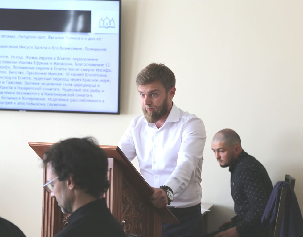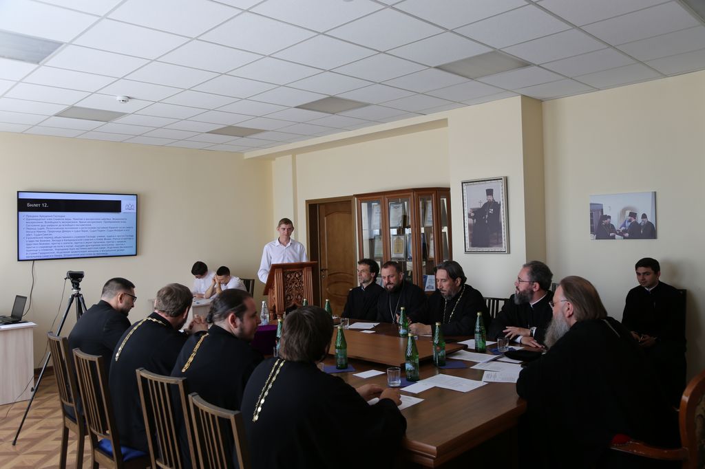 Вступительные испытания открылись экзаменом по Истории России. Затем была проведена письменная работа по русскому языку и комплексный богословский экзамен, по завершению которого владыка Меркурий провел собеседование с поступающими по практическим аспектам участия абитуриентов в приходской и богослужебной жизни.