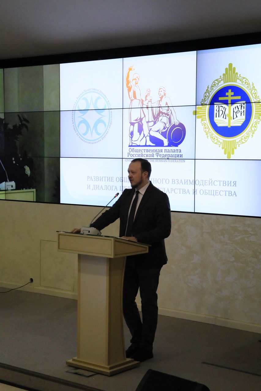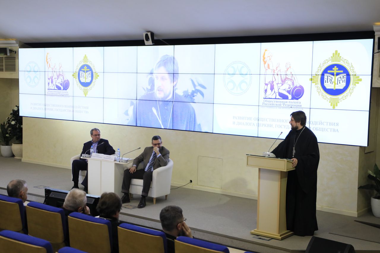 В зале пленарных заседаний Общественной палаты Российской Федерации в рамках XXVII Международных Рождественских образовательных чтений состоялась секция «Развитие общественного взаимодействия и диалога Церкви, государства и общества». Мероприятие проводилось Синодальным отделом по взаимоотношениям Церкви с обществом и СМИ в рамках направления «Взаимодействие Церкви с государственными и общественными институтами и СМИ». Сопредседателями секции выступили секретарь Общественной палаты Российской Федерации В.А. Фадеев и председатель Синодального отдела по взаимоотношениям Церкви с обществом и СМИ В.Р. Легойда.