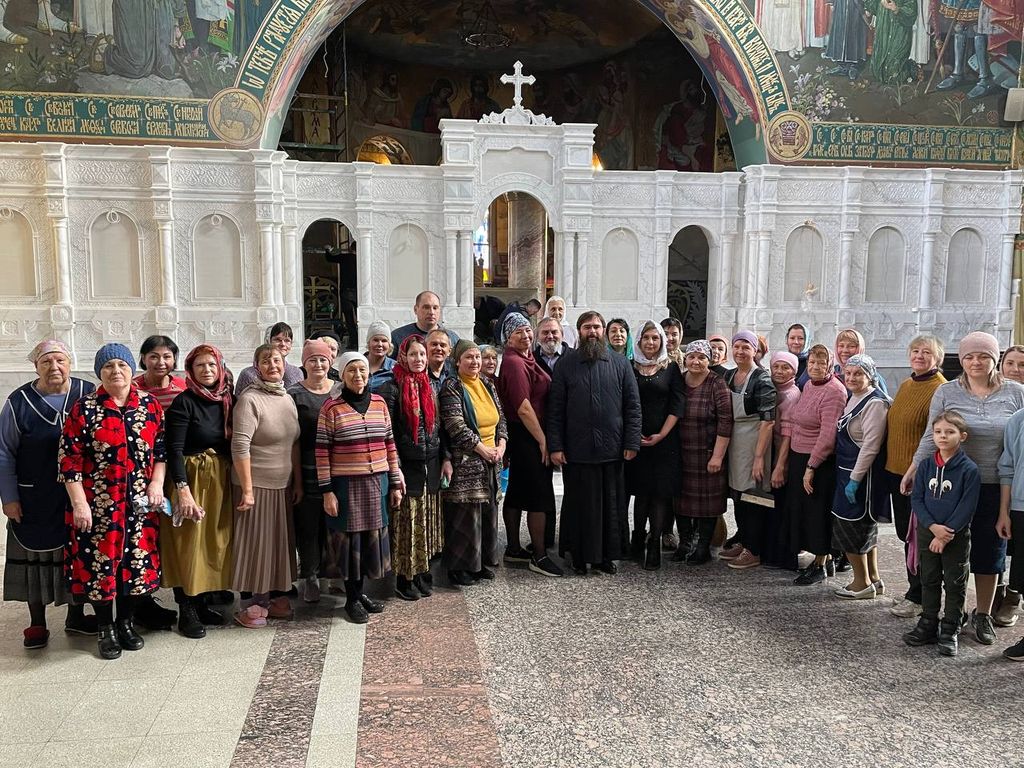 По завершении основных реконструктивных работ в центральной части собора, духовенство и множество прихожан собрались вместе для совместного труда. Под руководством настоятеля Покровского кафедрального собора иерея Александра Теличкина совместными усилиями прихожане и служащие храма демонтировали временные огораживающие конструкции и провели генеральную уборку, подготавливая храм к богослужениям.