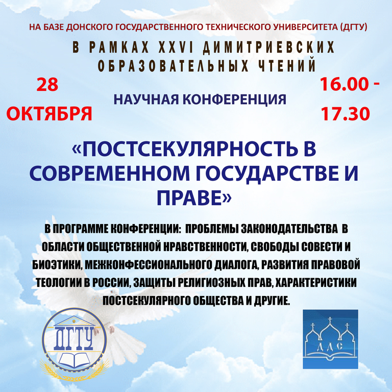 В рамках XXVI Димитриевских образовательных чтений пройдёт научная конференция на тему: «Постсекулярность в современном государстве и праве»