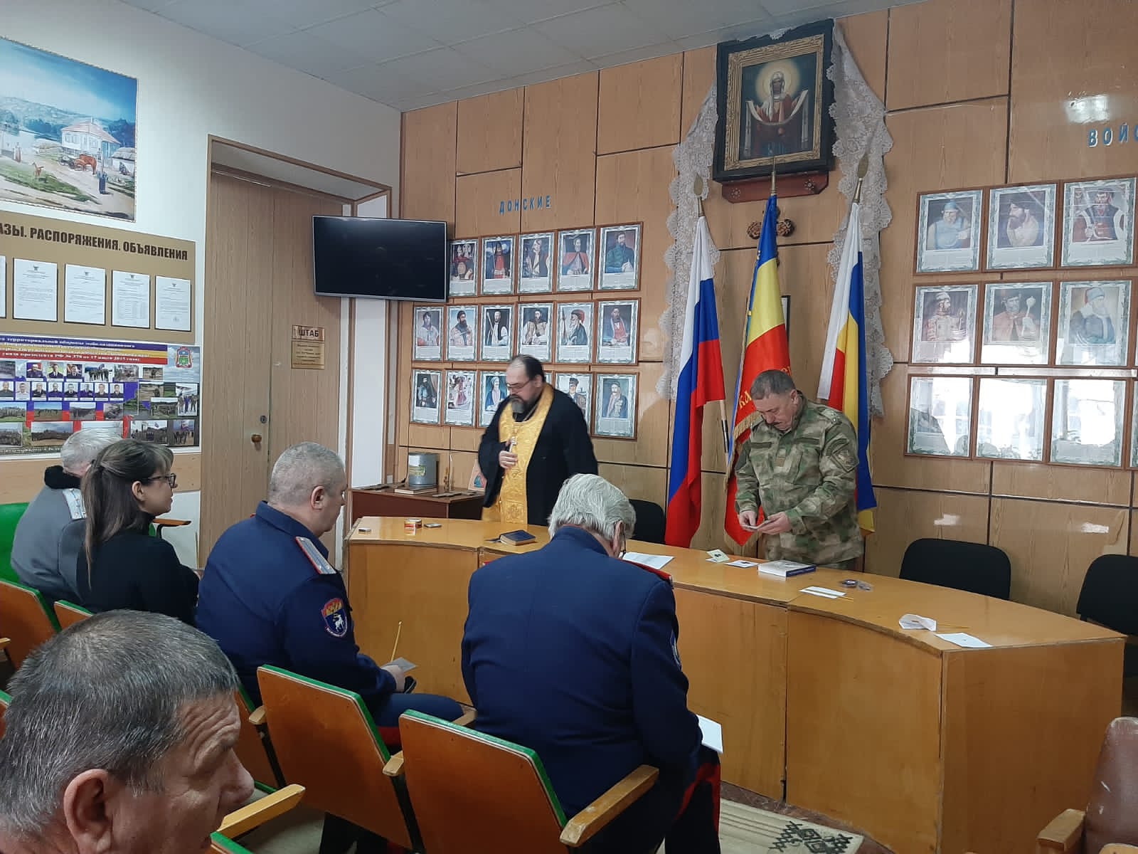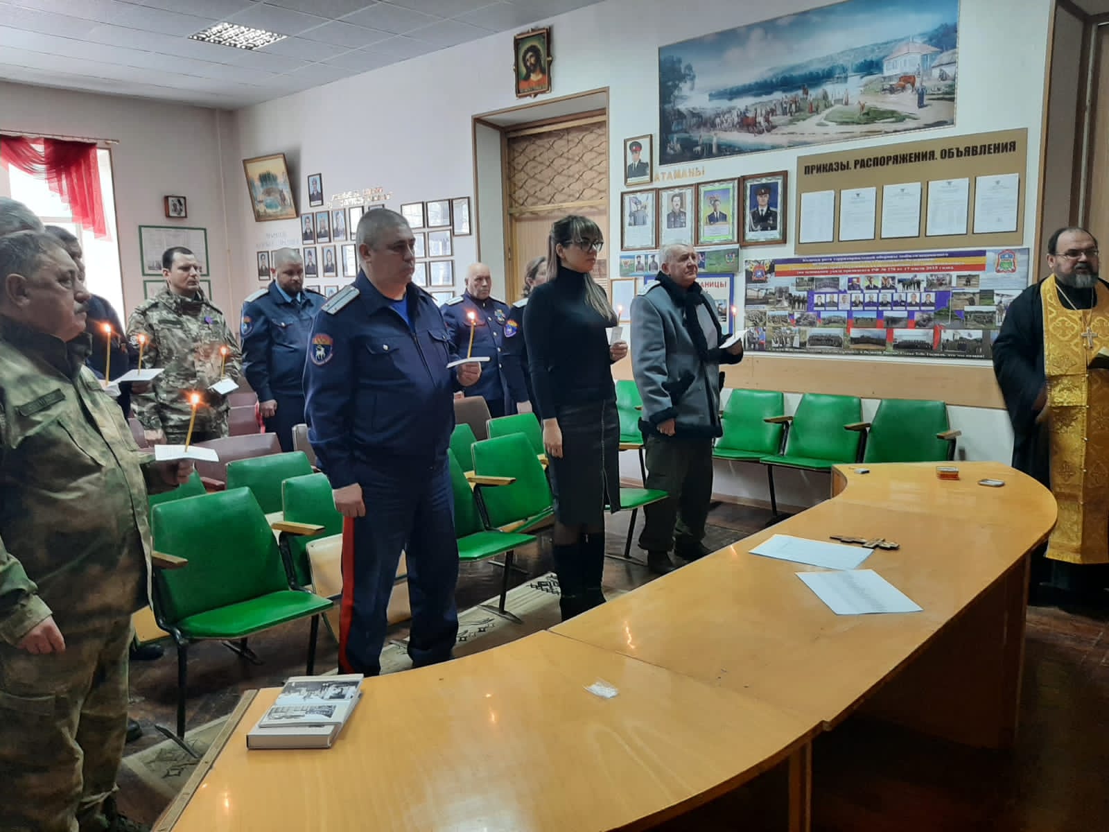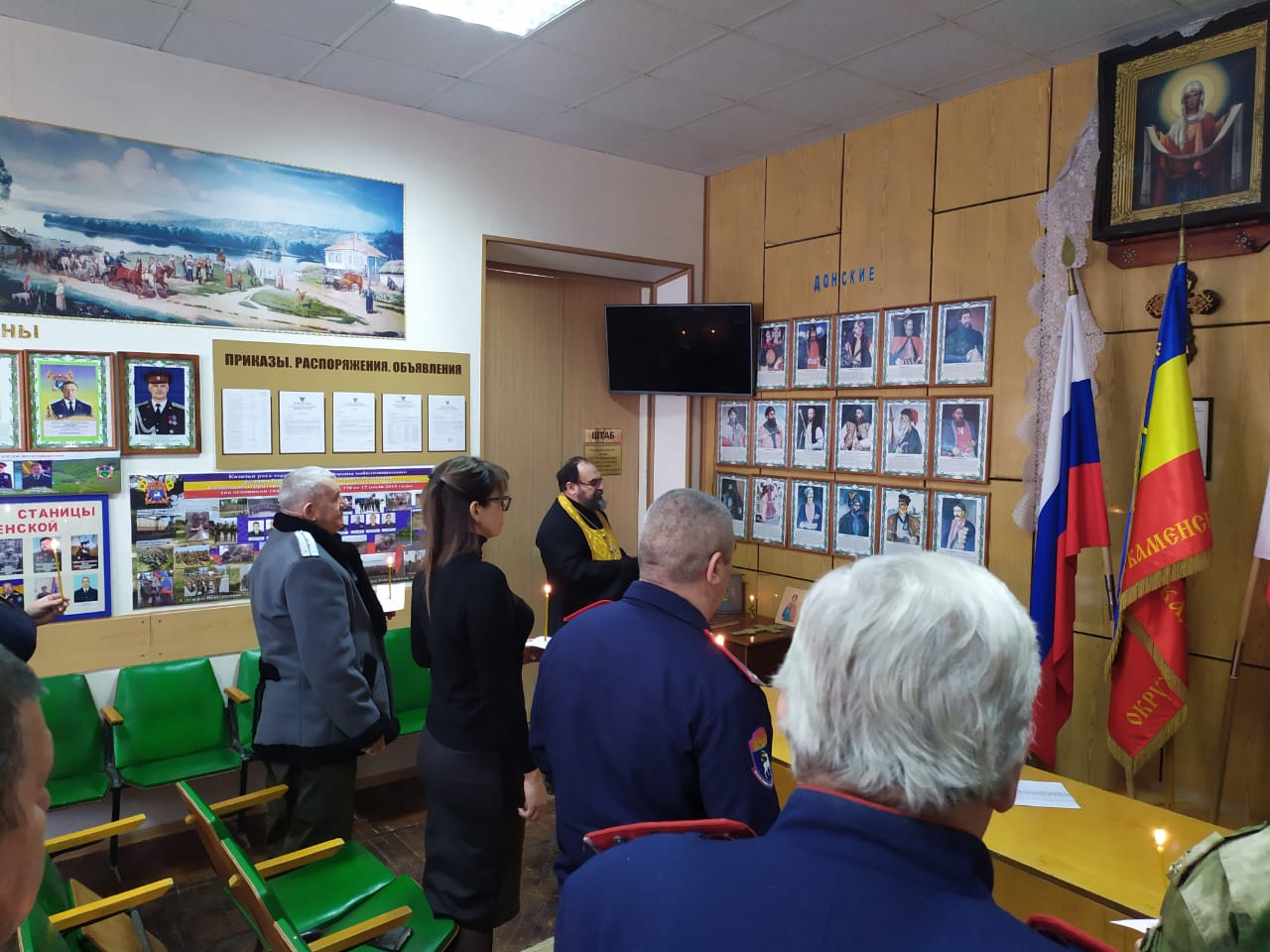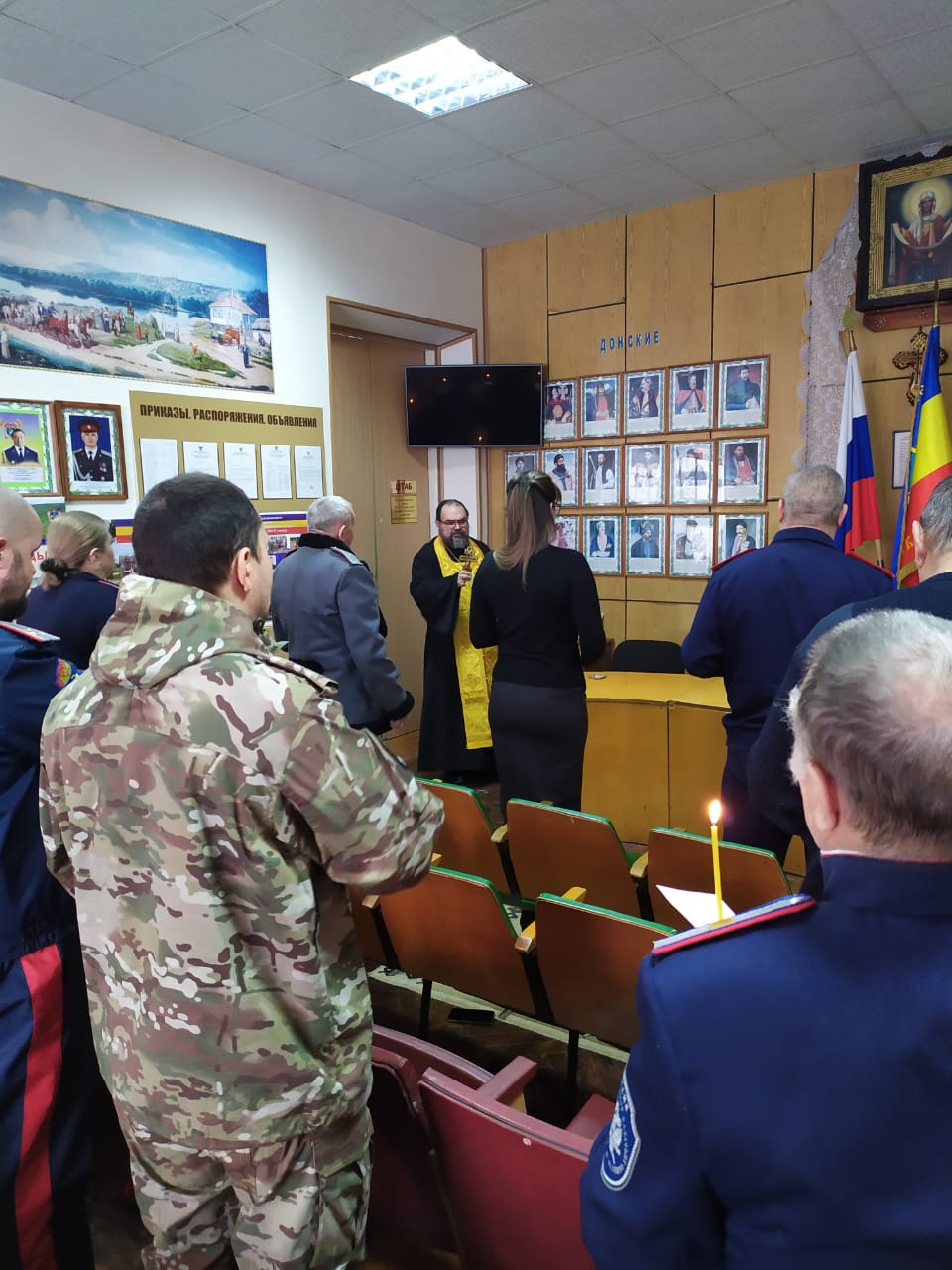 В штабе Донецкого округа ВКО ВВД духовником округа, протоиереем Василием Хадыкиным, в присутствии атамана Донецкого округа казачьего полковника Сидакова Алексея Николаевича, доверенного лица кандидата на должность президента РФ Путина В.В. Артюхова Олега Ивановича, атамана ГКО «Каменск-Шахтинского» хорунжего Хлуса Дмитрия Сергеевича, представителей структурных подразделений Донецкого округа, была отслужена панихида по погибшим бойцам штурмового казачьего отряда «Шторм».