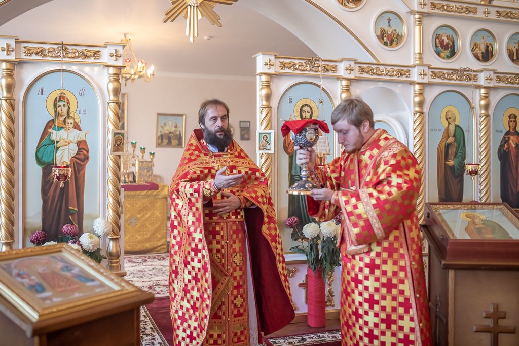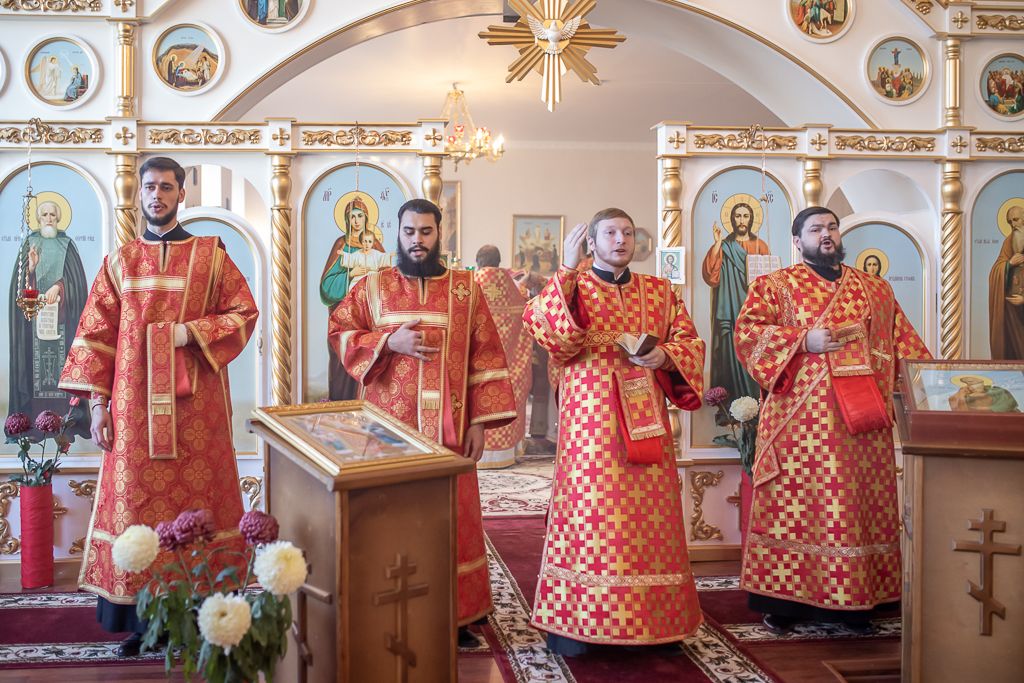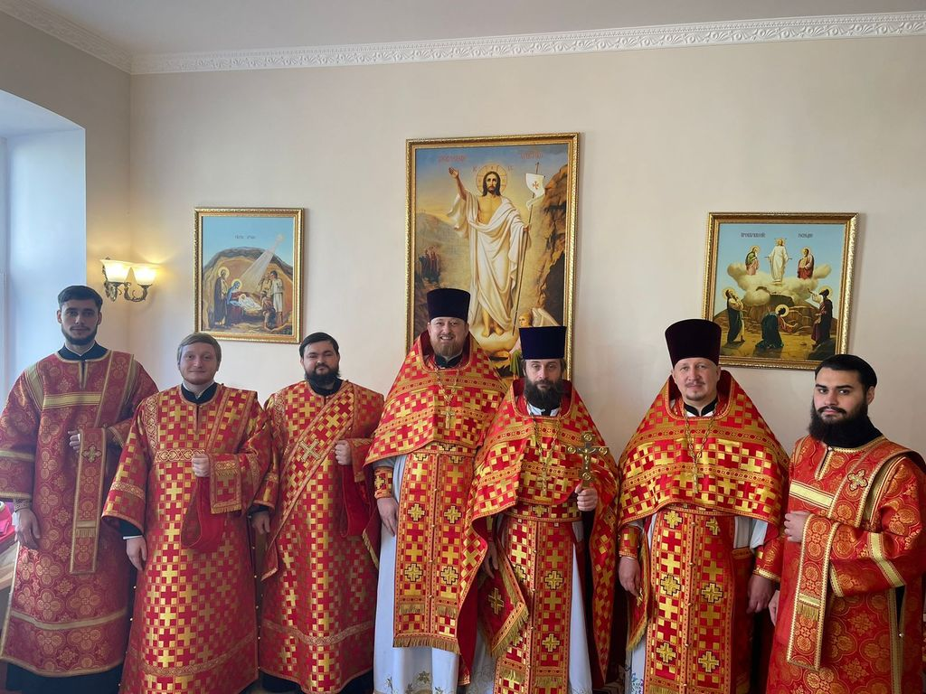 Божественную литургию совершили председатель епархиального отдела образования Шахтинской епархии протоиерей Сергий Яценко; настоятель храма при институте, старший преподаватель кафедры протоиерей Роман Амплеев; настоятель храма в честь Казанской иконы Богородицы г. Гуково протоиерей Николай Быков; диакон Трофим Осяк, диакон Андрей Трошин, диакон Вячеслав Иващенко и диакон Михаил Дубянский.