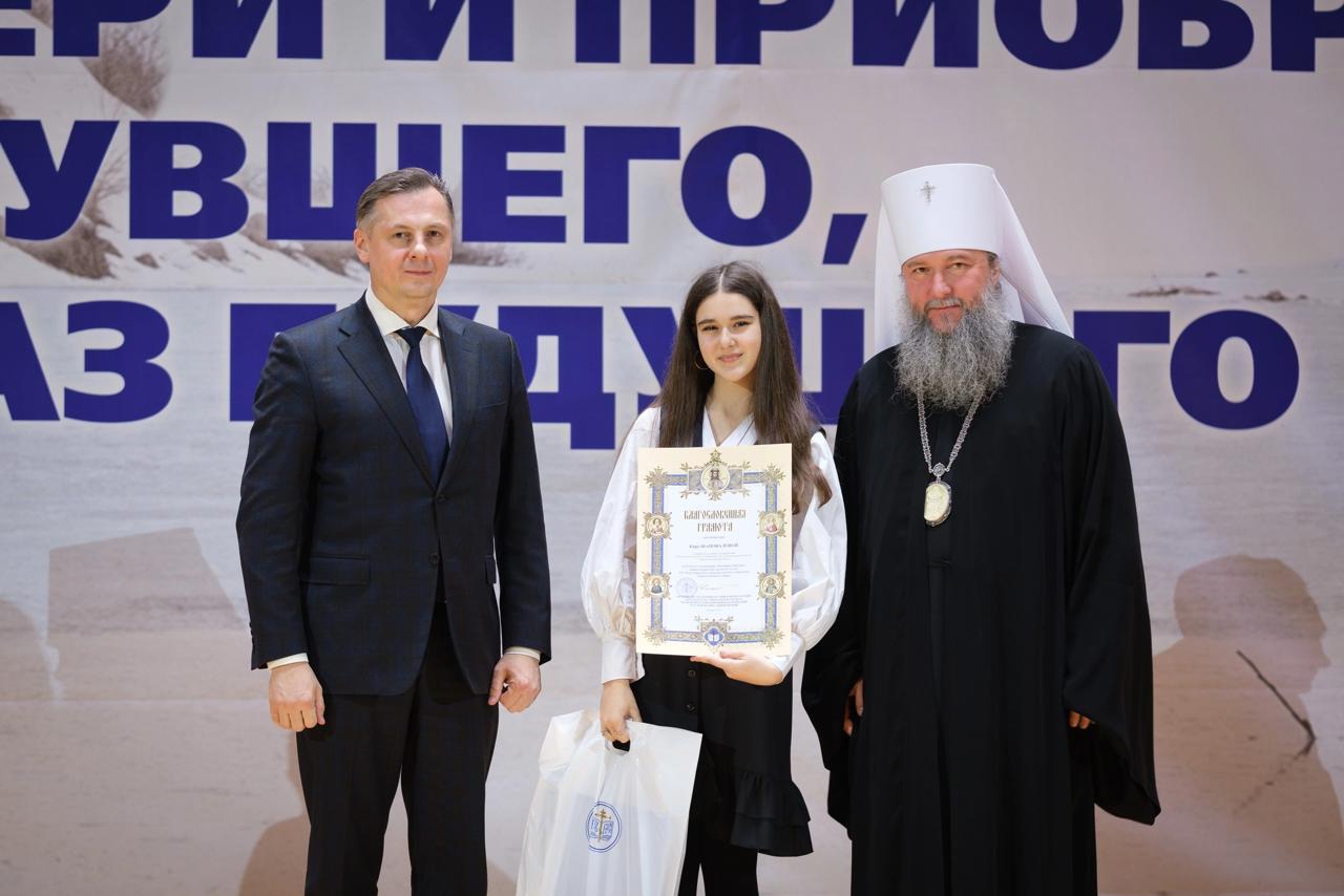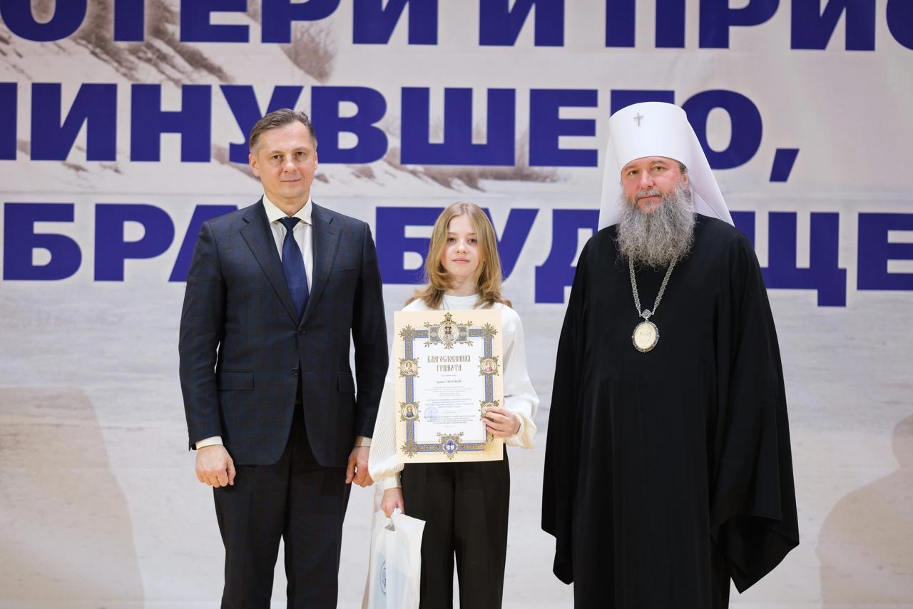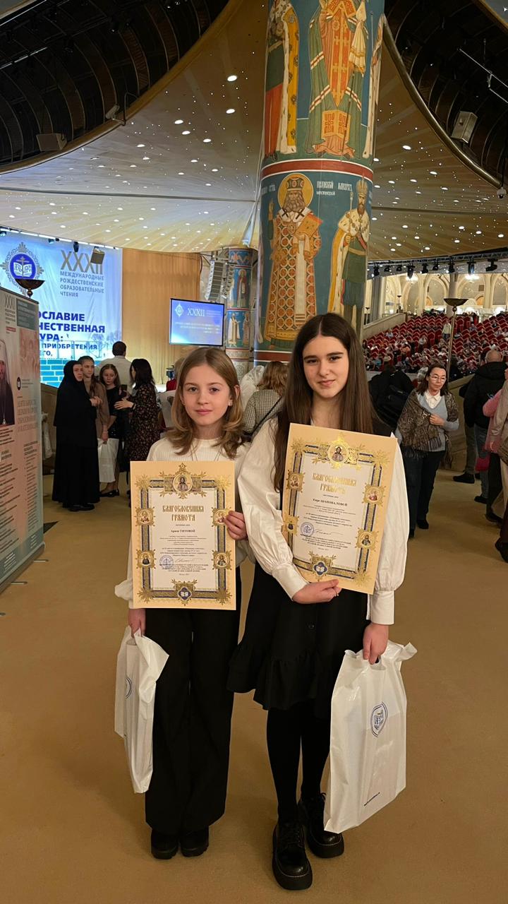 По благословению епископа Шахтинского и Миллеровского Симона в церемонии награждения приняли участие Титова Арина и Шаповалова Кира, победители от Шахтинской епархии.