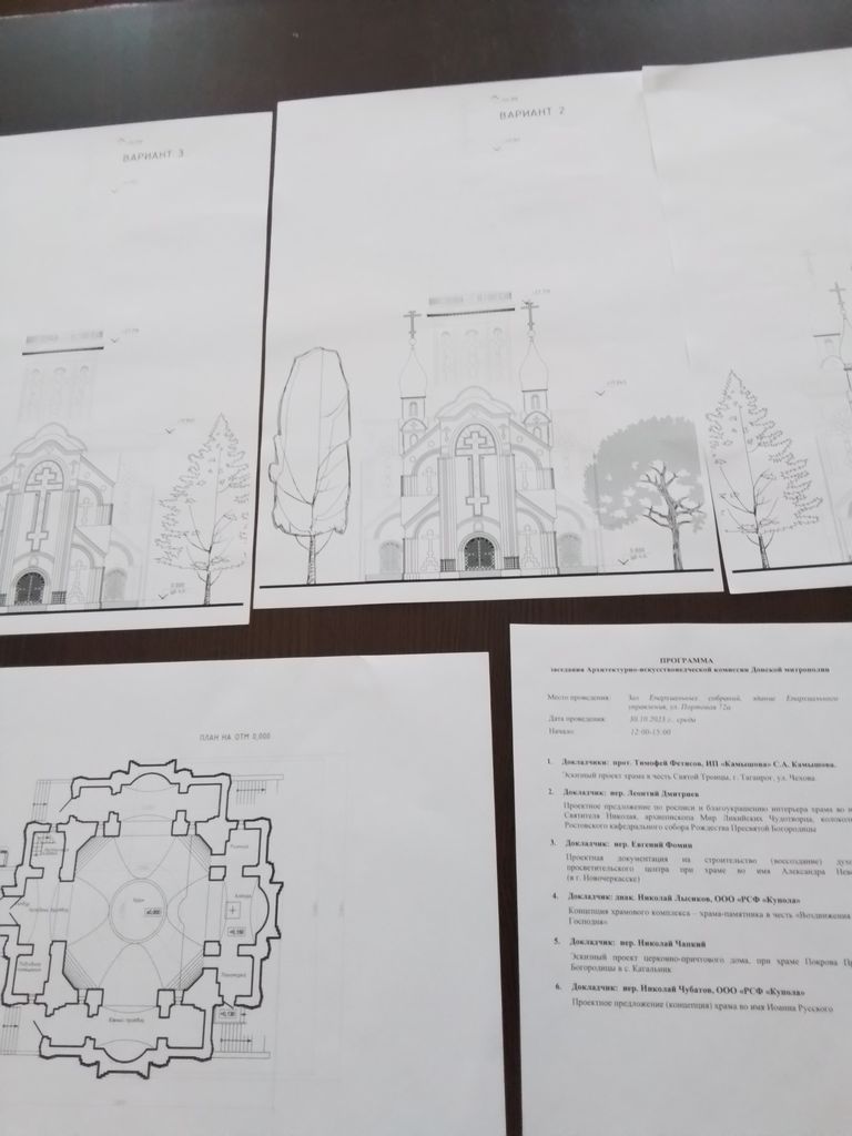 В ходе заседания были рассмотрены: эскизный проект храма в честь Святой Троицы г. Таганрога; проектное предложение по росписи и благоукрашению интерьера храма во имя Святителя Николая, архиепископа Мир-Ликийских Чудотворца в нижнем ярусе колокольни Ростовского Рождества Пресвятой Богородицы кафедрального собора; проектная документация на строительство (воссоздание) духовно-просветительского центра при храме во имя святого благоверного князя Александра Невского в г. Новочеркасске. Также были рассмотрены эскизный проект церковно-причтового дома при храме Покрова Пресвятой Богородицы села Кагальник; проектное предложение (концепция) храма во имя святого праведного Иоанна Русского г. Батайска и концепция храмового комплекса храма-памятника в честь Воздвижения Честного и Животворящего Креста Господня в районе старого аэропорта г. Ростова-на-Дону. По ряду проектных документов комиссией были высказаны замечания и предложения, которые будут учтены разработчиками при реализации проектов.