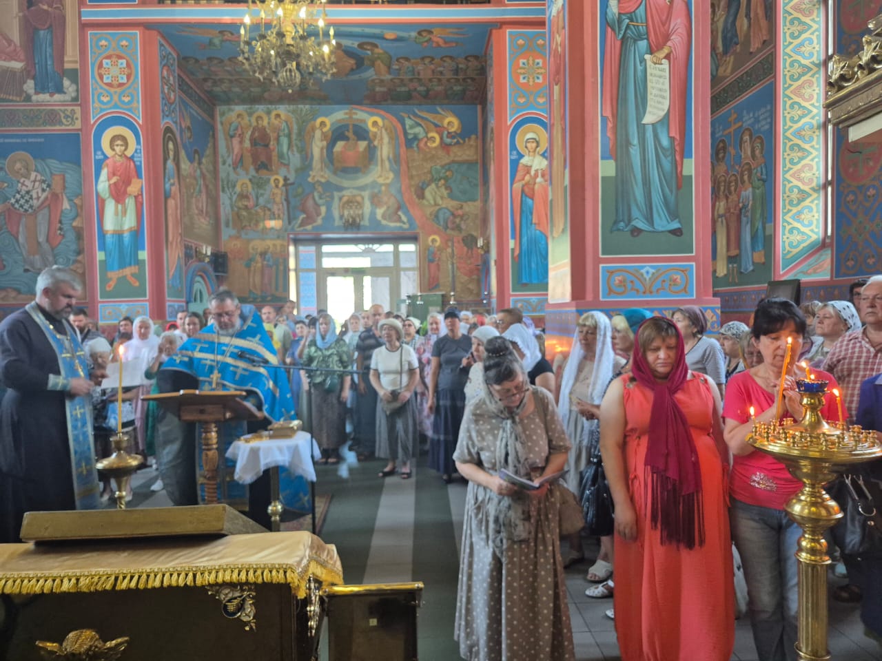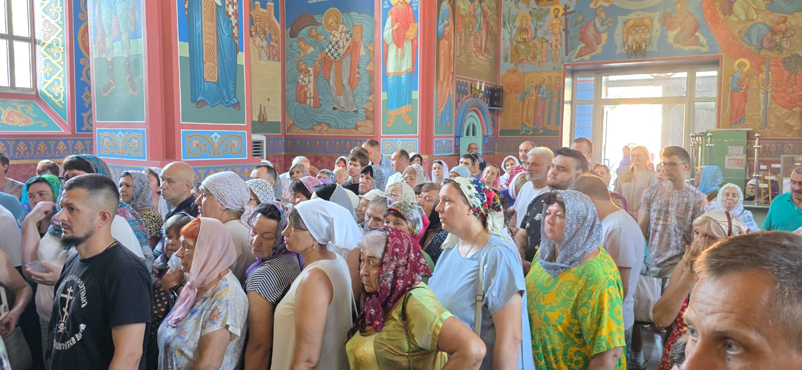 5 августа, первыми в Шахтинской епархии, торжественно с колокольным звоном святыню встречали множество верующих и духовенство в храме апостола Андрея Первозванного города Миллерово.