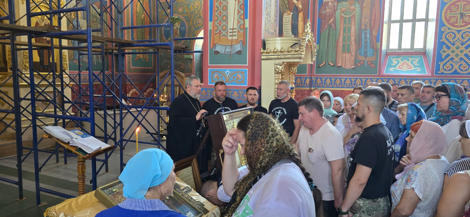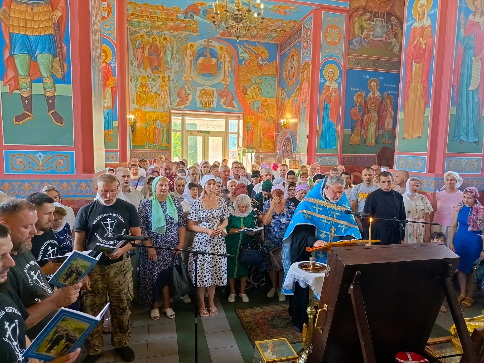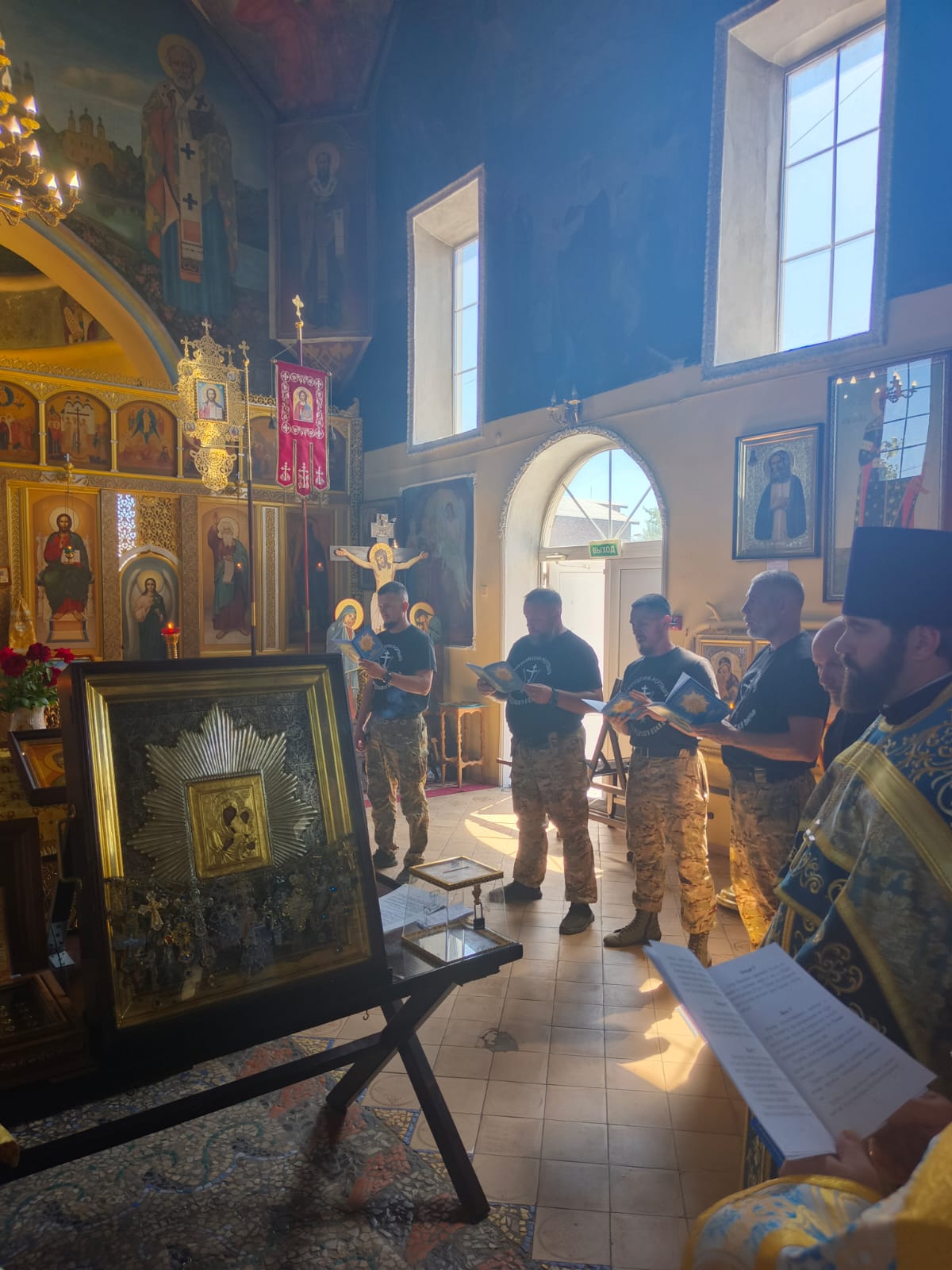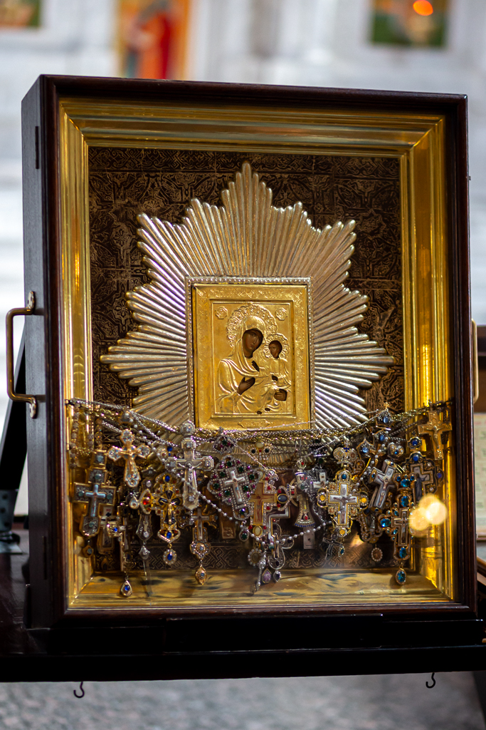 Хор казаков, сопровождающих святыню, в каждом храме украшал богослужение пением молебна и акафиста.