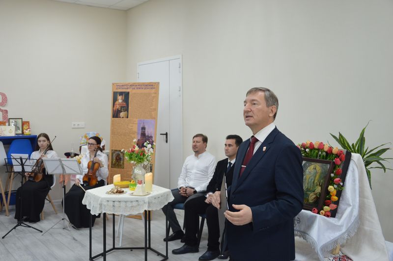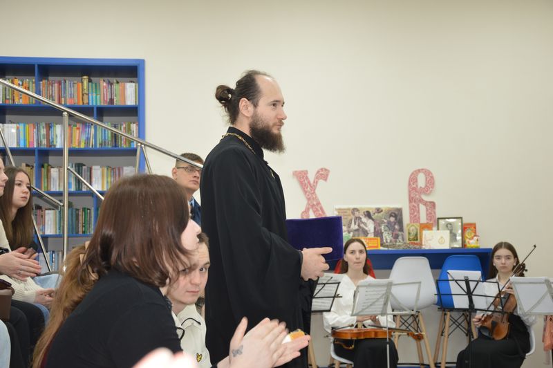 Разговор о духовном, вечном, непреходящих христианских ценностях состоялся в читальном зале библиотеки вуза. В мероприятии, которое провёл старший преподаватель кафедры, древлехранитель Шахтинской епархии, заместитель руководителя Ростовского отделения Императорского Православного Палестинского Общества Илья Геннадиевич Шарков, приняли участие заместитель главы Администрации г. Шахты Александр Сергеевич Байздренко, управляющая делами Миллеровской районной Администрации Ирина Владимировна Горбань, декан факультета «Техника и технологии» доцент Дмитрий Викторович Русляков, настоятель домового Иоанно-Богословского храма института иерей Олег Брехов, председатель Молодёжного парламента при городской Думе города Шахты Андрей Ткачев, доцент Александр Вячеславович Суханов, старший преподаватель Людмила Борисовна Томилина, преподаватели ИСОиП, Шахтинского музыкального колледжа, студенческая молодёжь, волонтёры культуры города, представители городских СМИ.