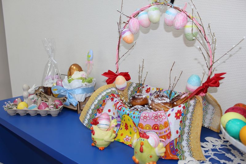 Жюри в составе А.С. Байздренко и И.В. Горбань оценили конкурсные работы, в результате первое место было присуждено пасхальной кулинарной композиции Александра Вячеславовича Суханова, второе – инсталляции старшего преподавателя Людмилы Борисовны Томилиной и третье призовое место – пасхальным композициям бухгалтера 1 категории Виктории Анатольевны Верецкой и педагога-психолога, кандидата философских наук Людмилы Евгеньевны Киреевой.