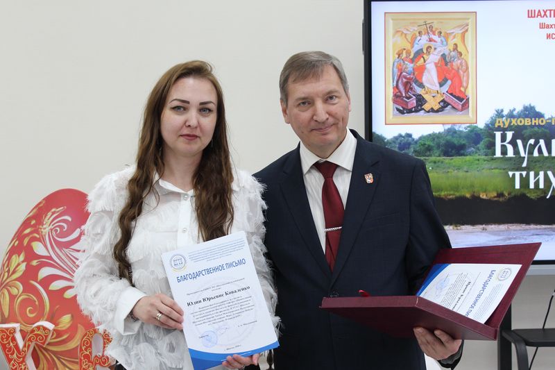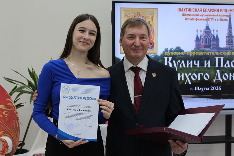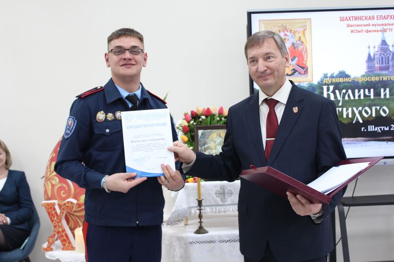 В завершении Благодарственными письмами директора ИСОиП (филиала) ДГТУ в г. Шахты Станислава Александровича Масленникова были отмечены преподаватели и студенты Шахтинского музыкального колледжа, а также участники студенческого научного кружка «Православный Восток» кафедры «Православная культура и теология».