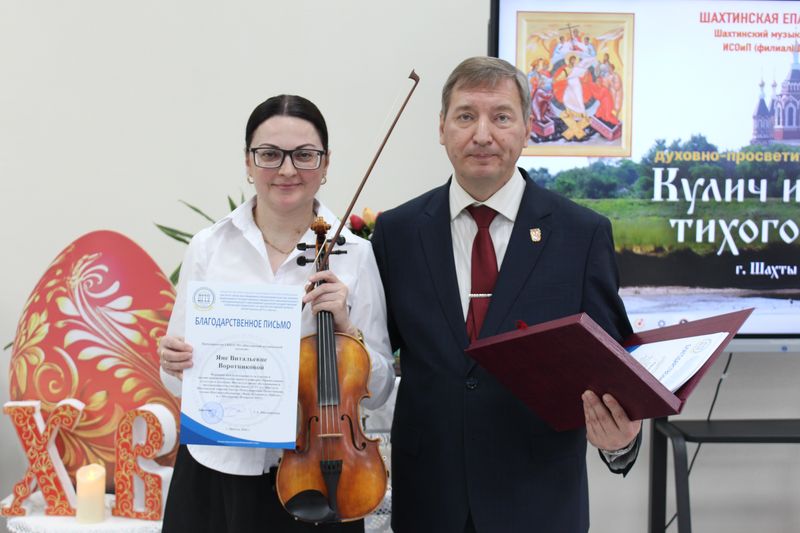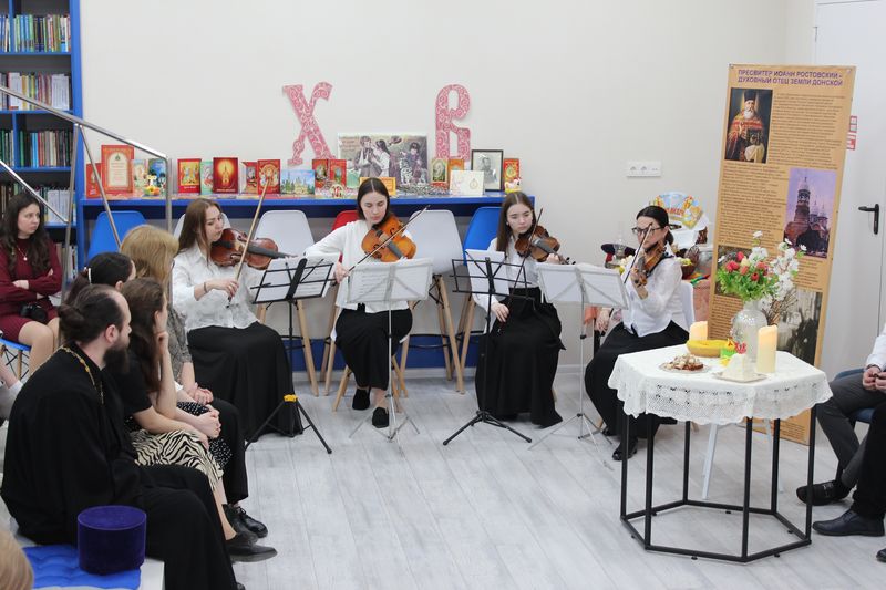 Мероприятие Пасхального проекта украшали классические произведения в исполнении струнного квартета Шахтинского музыкального колледжа: преподавателей Юлии Юрьевны Коваленко, Яны Витальевны Воротниковой и студентов Софии Нежновой, Руфины Танкаевой.