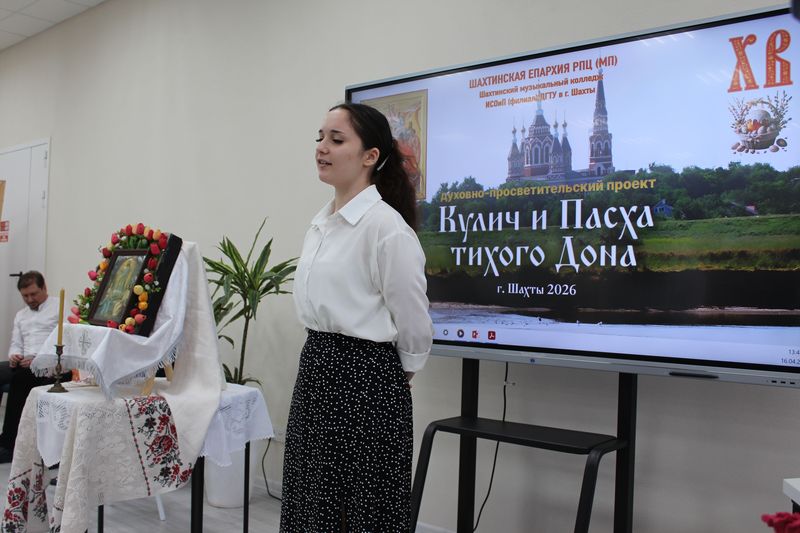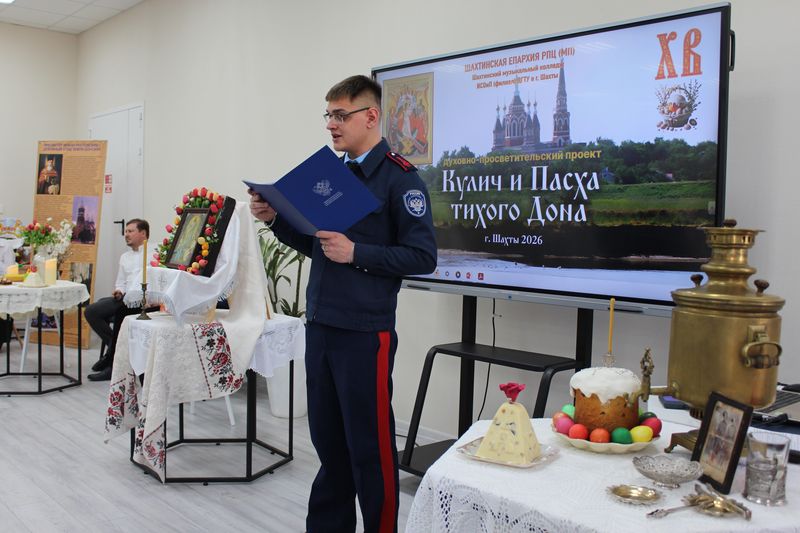 Изучению и популяризации донских традиций празднования Светлого Христова Воскресения, истории казачества и региона был посвящён проведённый в четверг Светлой седмицы, 16 апреля сего года проект «Кулич и Пасха тихого Дона». Он подготовлен кафедрой «Православная культура и теология» Института сферы обслуживания и предпринимательства (филиала) ДГТУ в г. Шахты совместно с Шахтинской епархией и Шахтинским музыкальным колледжем.